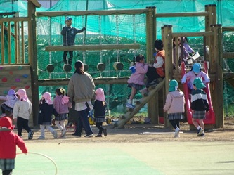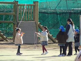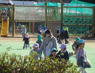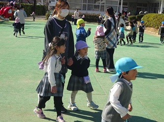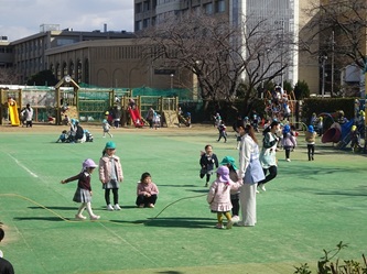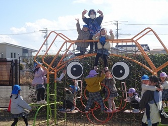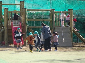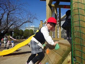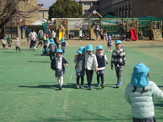 日差しは春を感じさせますが、風が冷たい中、子どもたちは元気に遊んでいます!