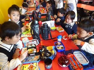 みんなが楽しみにしていた「お弁当タイム」の様子です。