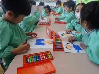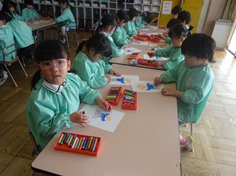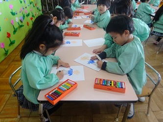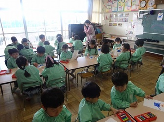 年中さんの部屋では、卒園児(年長)さんへのプレゼントづくりが始まっていました!