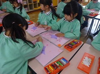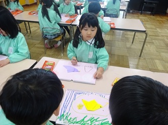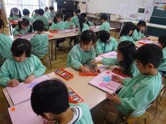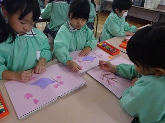 春に向かうイメージで、思い思いにきれいな花も描き加えていました!