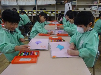 年長さんの部屋では、制作あそびで「鳥」を作っていました!