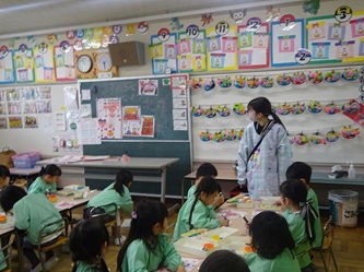 先生たちが用意した写真などを基に、一生懸命に色付けをしていました!