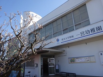 幼稚園の玄関前にある「さくらんぼ」の花が咲きました!