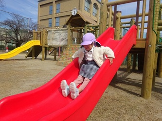 すべり台を楽しんだり、いろいろな遊具で遊んだり、先生とかけっこをしたり、・・・・。