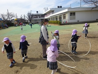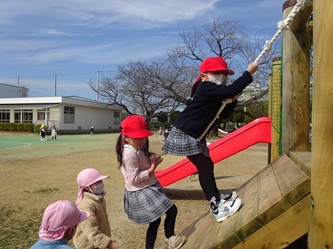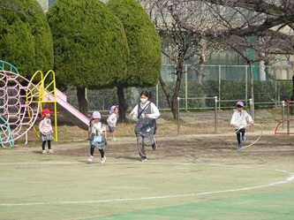 午後の園庭では、年少さんも元気に遊んでいます!