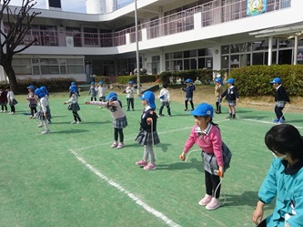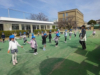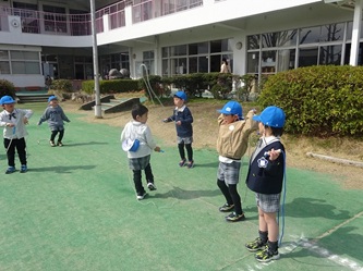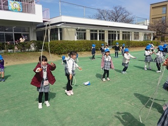年長さんは、午前は「卒園式の練習」を行い、午後は「なわとび」をしました。